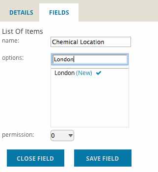 Lists of Items are fields that let you tell teamfocus what values are acceptable to your Team. This is great for things like “Branch Location” or “Incident Types”