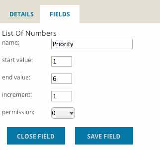 Lists of Numbers are fields that let you tell teamfocus which numbers are acceptable to your Team. This is great for things such as ‘Priorities’.