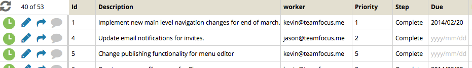 The Description column here is a Text Field, and is available for simple clicking and editing. All data in these fields is kept by the teamfocus search engine, and is fully discoverable in searches.